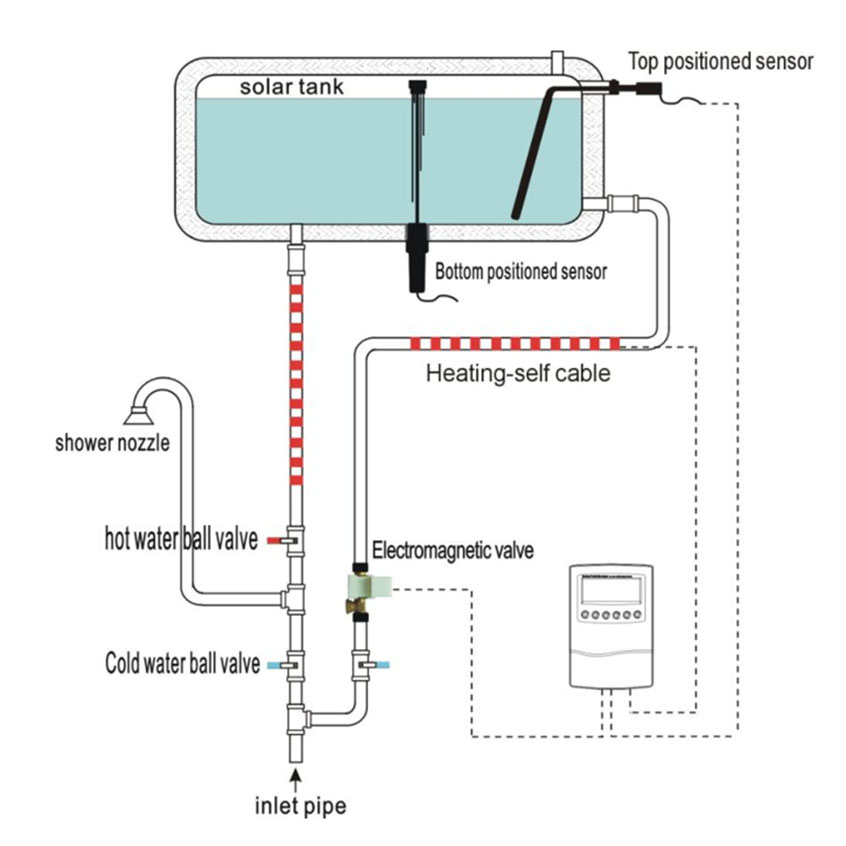 El controlador solar SR601 puede mostrar la temperatura del agua y el nivel del agua; controlar el suministro de agua del tanque de agua a través de la temperatura del agua, el nivel del agua y la configuración del tiempo; y puede controlar la calefacción eléctrica y otros equipos auxiliares para controlar completamente el calentador solar de agua. La lista de más funciones es la siguiente: