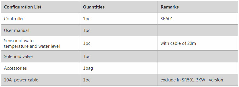 يمكن للتحكم بالطاقة الشمسية SR501 عرض درجة حرارة الماء ومستوى الماء. السيطرة على إمدادات المياه خزان المياه من خلال درجة حرارة المياه ومستوى المياه وإعداد الوقت. ويمكن التحكم في التدفئة الكهربائية وغيرها من المعدات الملحقة للتحكم الكامل في سخان المياه بالطاقة الشمسية. قائمة المزيد من الميزات هي على النحو التالي: